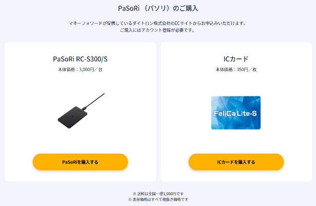 - MF紹介サイト等より、マネーフォワードクラウド対応の勤怠打刻カードリーダーPaSoRi (パソリ)と、ICカード(勤怠管理対象人数分)を購入します。
