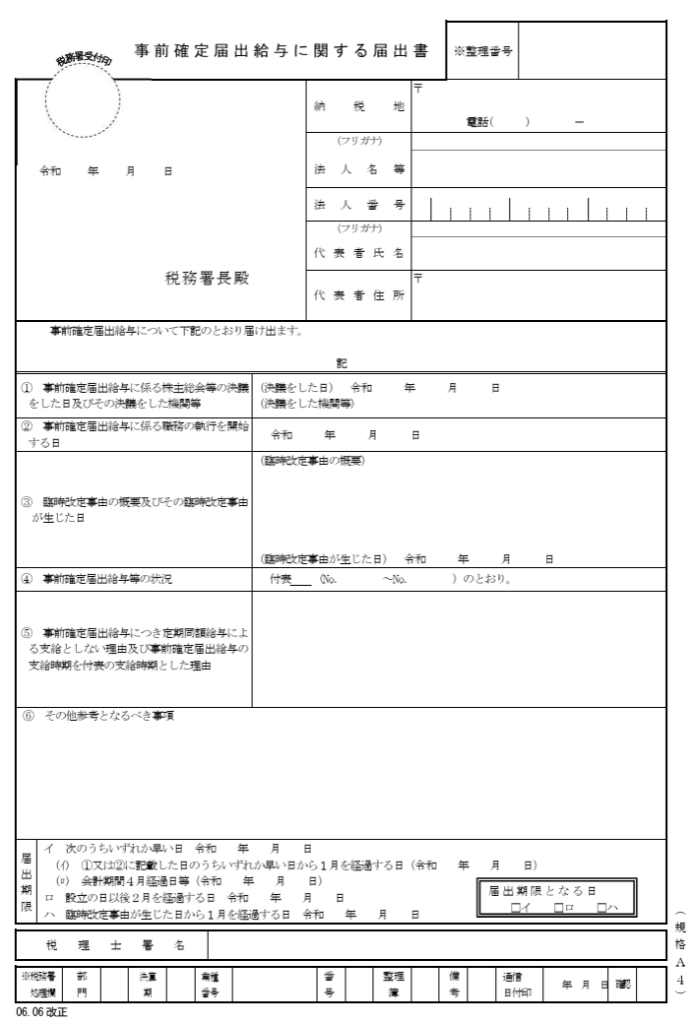 事前確定届出給与に関する届出のポイント