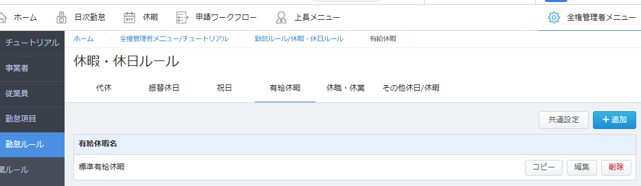 有給休暇ルールの設定(個別の休暇・休日ルールの設定)
