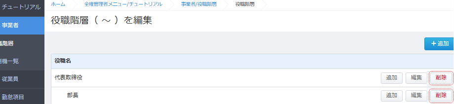 - CSVファイルに入力された「役職」が、マネーフォワード クラウド勤怠に未登録の場合のエラーなので、「インポートファイル」と「役職階層」の設定について確認する。