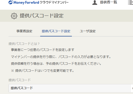 提供パスコードの設定