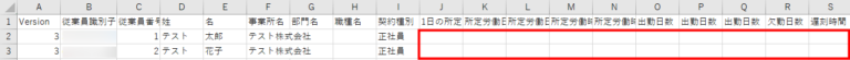- A列の「Version」とB列の「従業員識別子」は内部計算で使用するので、編集を行わないこと。