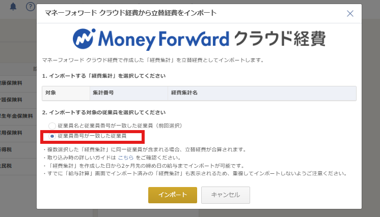 - ただし、備考欄については、空欄でインポートした場合、「給与計算」画面に表示されている内容が削除されるので注意する。