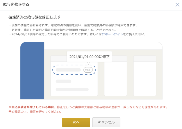 - 賞与計算作成後は変更できないため、新しい賞与計算の作成が必要になる