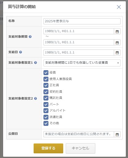 - 3月25日支給(3月31日締め)の給与計算:表示されない