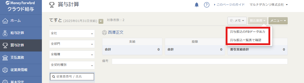 賞与振込_賞与振込一覧表を出力して振込金額を確認しながら銀行で振り込む方法