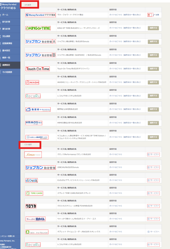 - そのため、マネーフォワード クラウド勤怠と勤怠項目の名称を一致させている場合、以下のサービスで出力したCSVファイルはそのまま取り込めない。